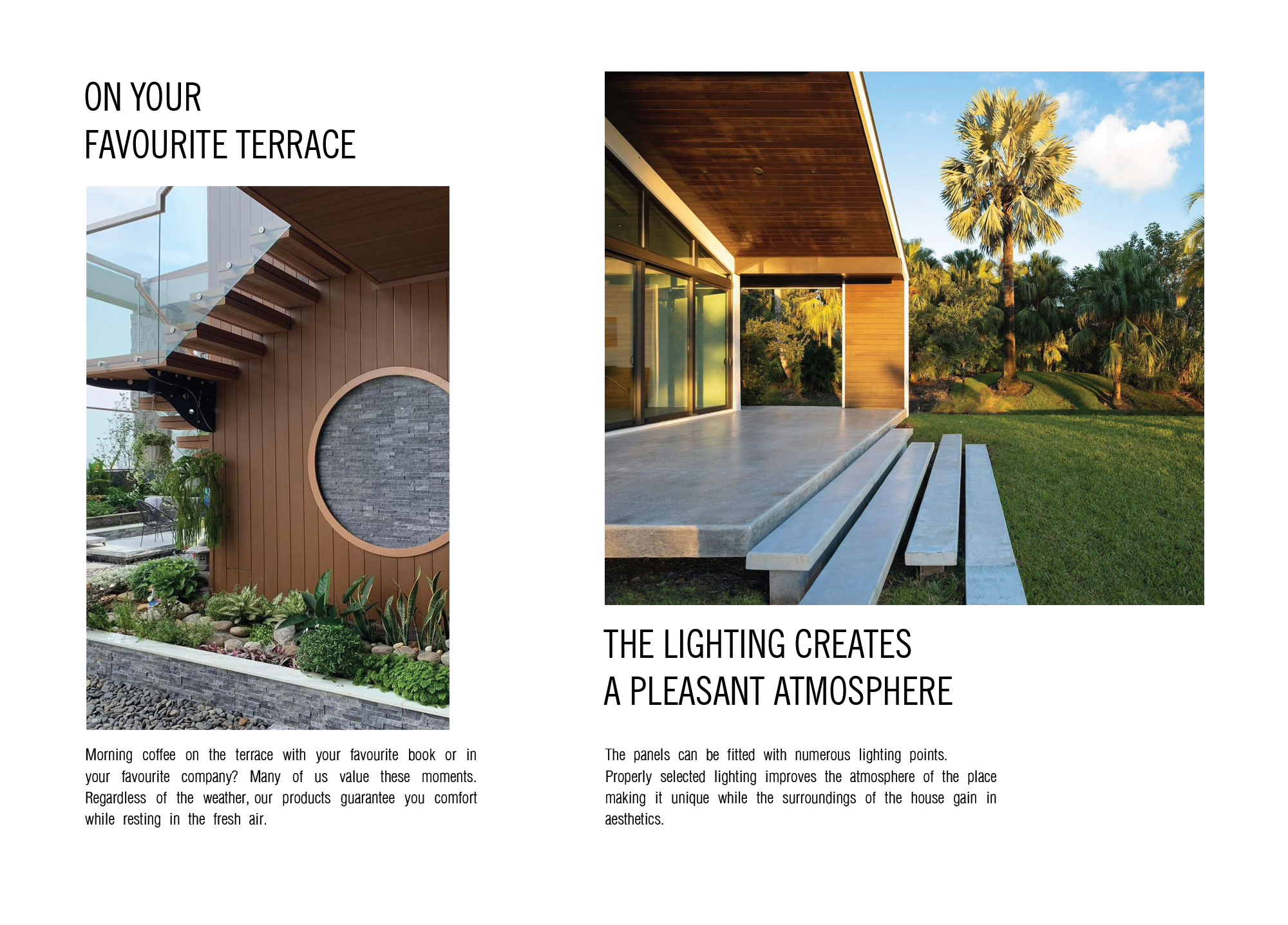 terraces. It can also be used in private houses – in bedrooms, living rooms or bathrooms.