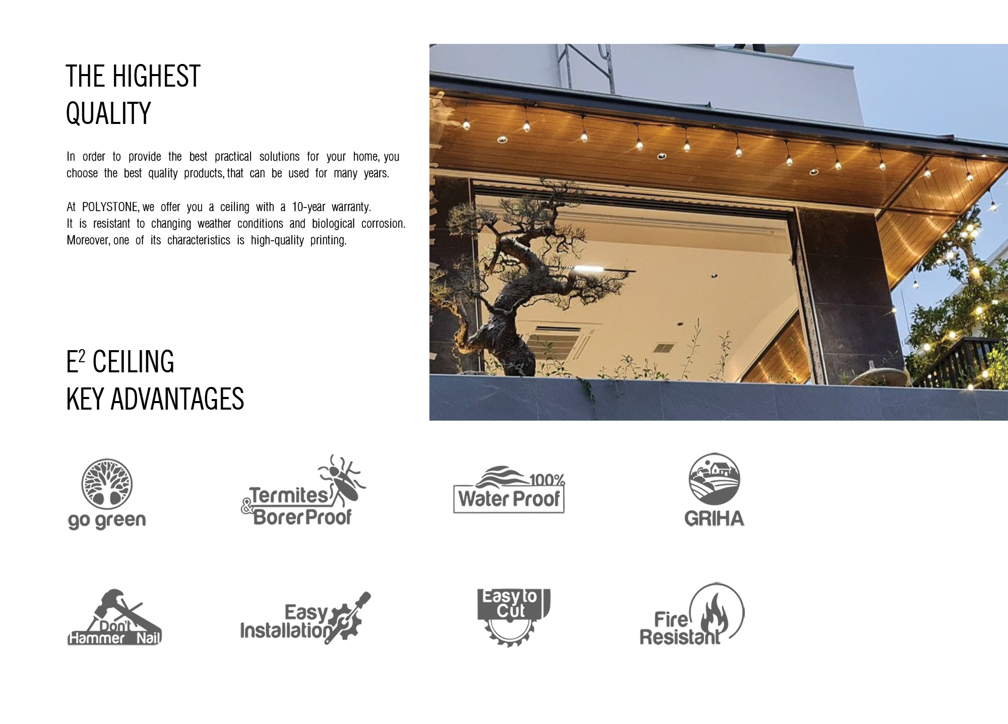 The innovative E2 ceiling system is a practical and problem-free way to finish roofs, balconies and